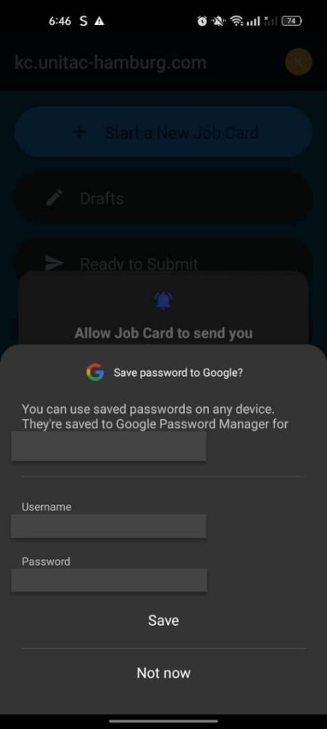 Once you successfully install the Digital Job Card on your Android device. Click on manually enter log in details.